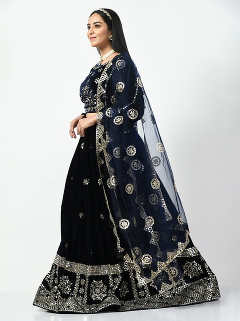 Navy blue and gold-toned embellished lehenga choli with dupatta, sequinned