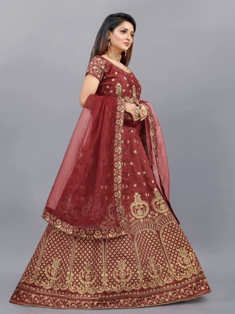 Lehenga Colour :- Maroon, Lehenga Fabric :- Banglory, Work :- Emrodairy, Length :- Choli Top – 1 mt & Bottom – 2.20 mt, Duppata Fabric :- Net(Emroidery and lace), Bloues – Unstiched, Occasions :- Casual, Party, Festival, Wedding Wear, Style :- Party Emrodairy Lehenga Choli With Duppata, Instruction :- Product Color May Slightly Variation Due To Photographic Lighting Or Your Screen Settings And Other Accessories Are Only Modaling Purpose, Wash Care Instruction :- Dry Wash Or Normal Hand Wash.