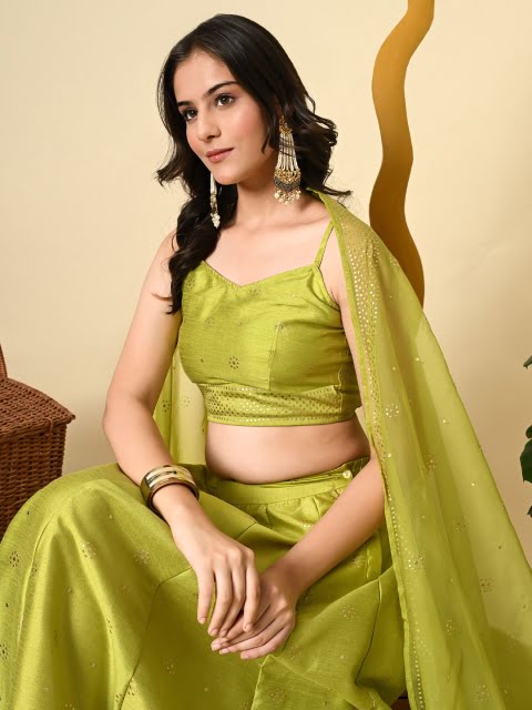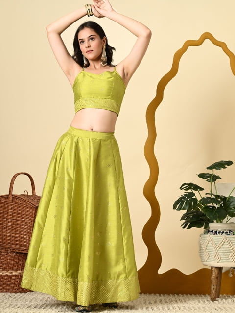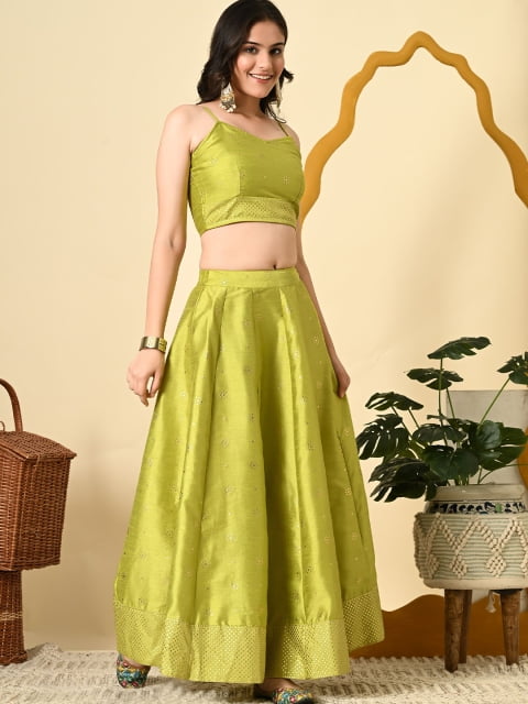 CRENOL THREADS Embellished Beads and Stones Ready to Wear Lehenga & Blouse With Dupatta