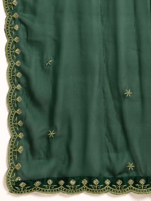Fabcartz Embroidered Sequinned Semi-Stitched Lehenga & Unstitched Blouse With Dupatta