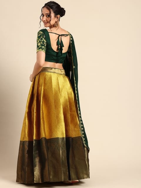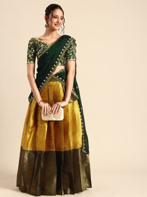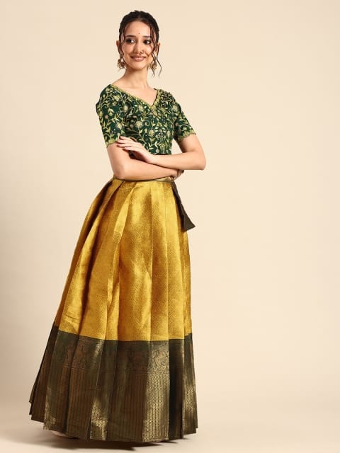 PURVAJA Yellow Jacquard Chaniya Choli Semi Stitched Lehenga Single