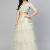 Unstitched Blouse : Upto 42″ Bust. Semi-Stitched Lehenga : Upto 42″ Waist. Dupatta : 2.5meters