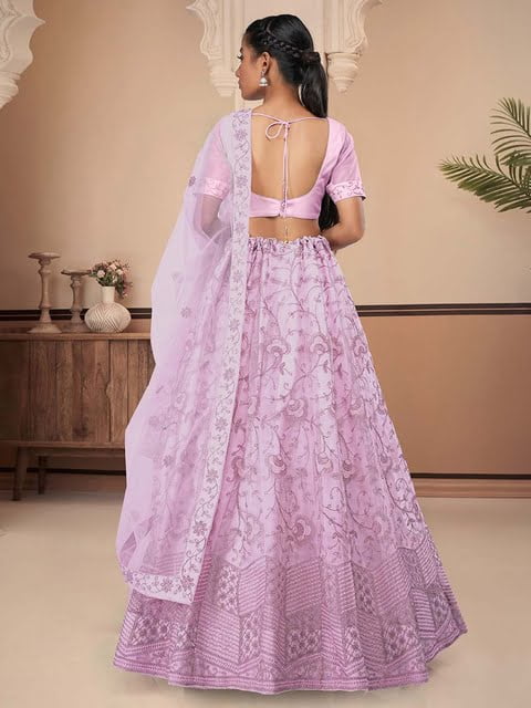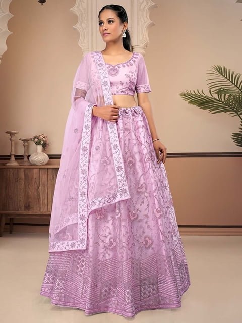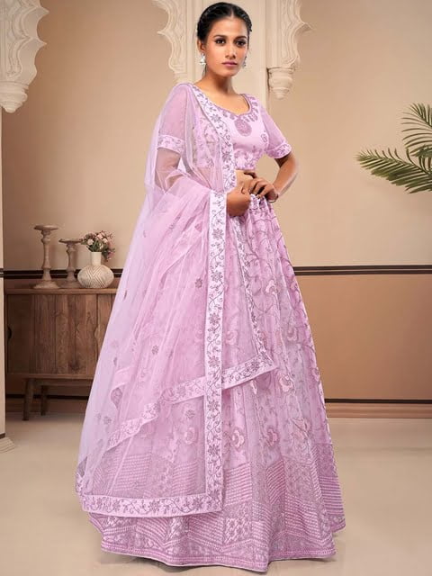 Pink and pink embroidered lehenga choli with dupatta, zari
