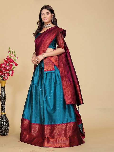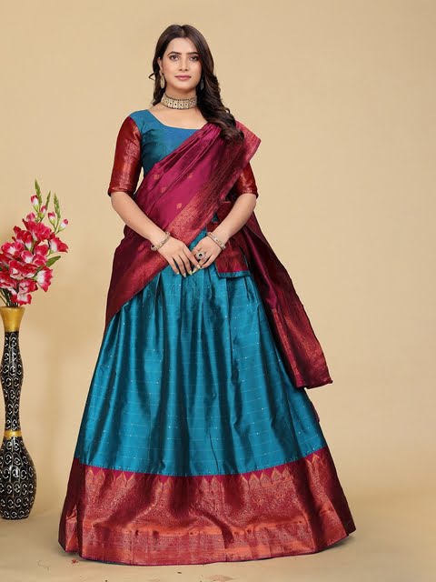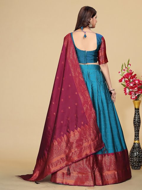 Turquoise blue and purple woven design lehenga choli with dupatta,